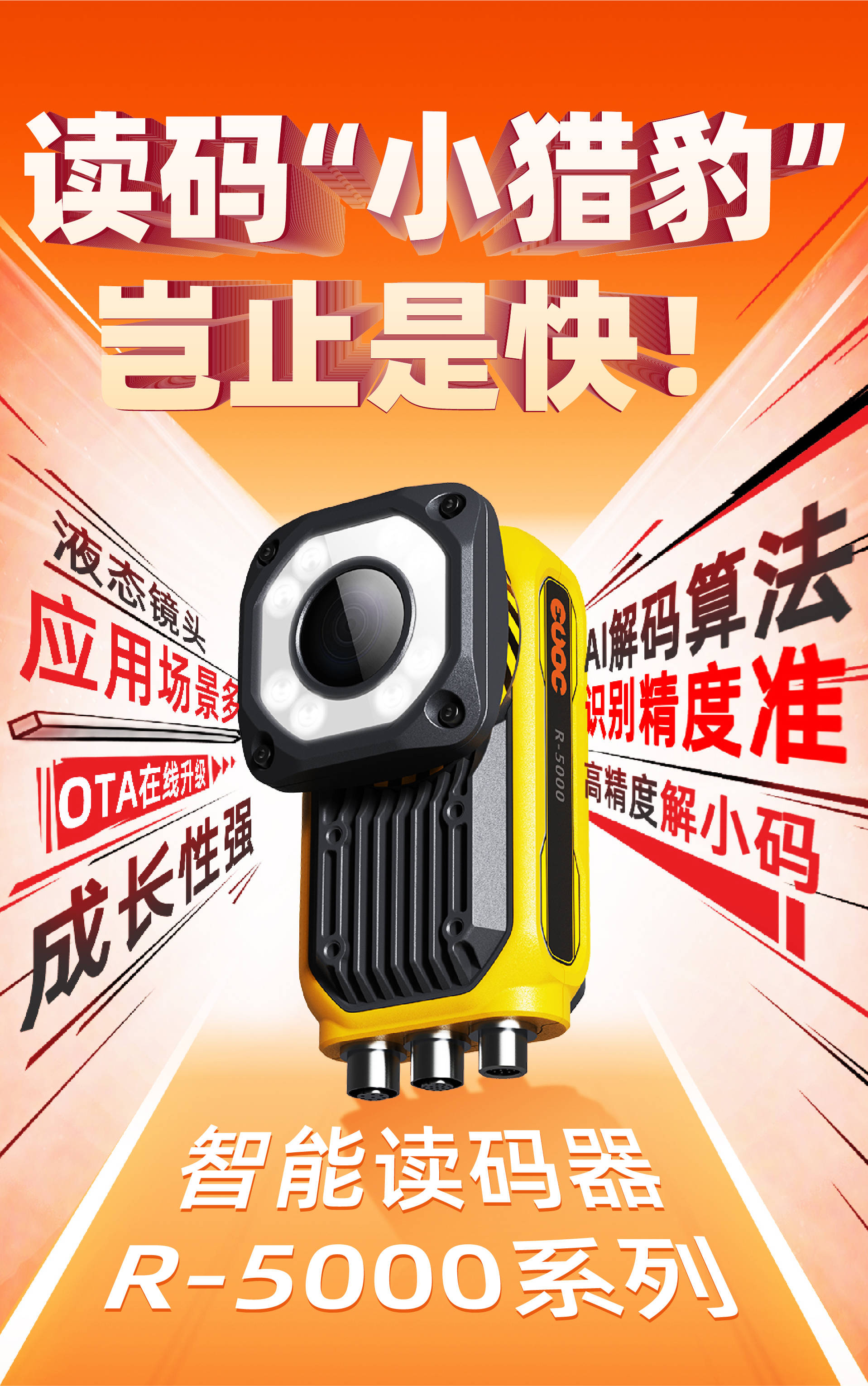 近日,huatihui全新推出智能读码器R-5000系列,搭载液态镜头、深度学习算法,自动变焦速度与解码速度均有显著提高。R-5000具有应用场景多、识别精度准、成长性强等特性,能够快速精准读码,可为用户提供超强性能的读码解决方案。